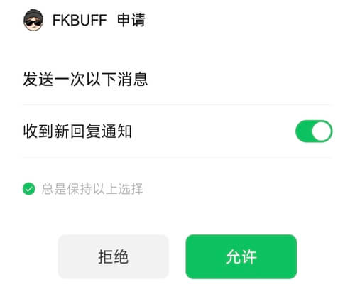 因微信要求,小程序通知是一次性的,所以每次接收通知前都需要授权确认